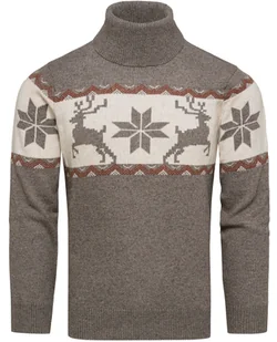 Brązowy wełniany sweter męski z golfem norweski wzór Recea