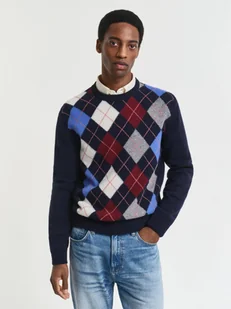 Gant Męski sweter z dzianiny z zawartością wełny Mężczyźni niebieski w kratkę, L