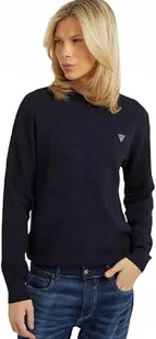 Guess Sweter Męski Granatowy z Logo Okrągły Dekolt S Gna
