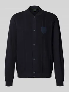 Kurtka z dzianiny męska BOSS Green;Model ‘KN_BB BC Lux FZ’;Efekt: jednolity kolor;Krój: Krój regular fit ;Zapięcie: Zatrzaski;Aplikacja: Naszywka z logo;Kształt kołnierza: