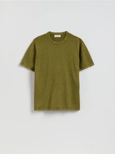 Reserved - Bawełniany sweter z krótkim rękawem - oliwkowy
