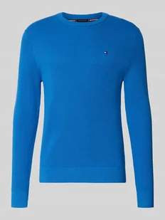 Sweter z dzianiny męski Tommy Hilfiger;Efekt: jednolity kolor, imitacja dzianiny;Krój: Krój regular fit ;Aplikacja: Detal z logo;Kształt kołnierza: Bez dekoltu;Dekolt:
