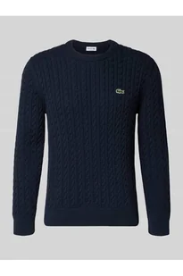 Sweter z dzianiny Lacoste o kroju regular fit sprawdzi się zarówno w codziennych stylizacjach, jak i w nieco bardziej formalnych zestawieniach. Mieszanka bawełny zapewnia przyjemny dotyk i komfort przez cały dzień, a ścieg warkoczowy podkreśla klasyczny charakter. Subtelna naszywka z logo oraz szew w kontrastowym kolorze dodają całości wyrazistego akcentu, nie dominując całości.