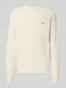 Sweter z dzianiny męski Calvin Klein Jeans;Czysta bawełna;Krój relaxed fit;Fakturowany wzór;Detal z logo;Okrągły dekolt;Długość tyłu w rozmiarze M: 73 cm;Długość rękawa w rozmiarze M: 71 cm