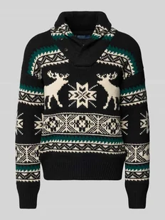 Sweter z dzianiny męski Polo Ralph Lauren;Mieszanka wełny;Luźny krój;Prążkowane wykończenia;Stójka;Długość tyłu w rozmiarze M: 68 cm;Długość rękawa w rozmiarze M: 75 cm