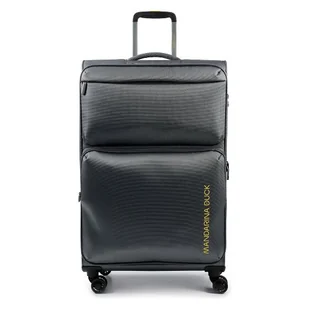 Odkryj nowe światy z 4-kołowym wózkiem z serii Zephyr marki Mandarina Duck. Ta walizka zachwyca przemyślanym wnętrzem składającym się z przegrody na pranie i fałdy rozszerzającej, uzupełnionej zamykaną rączką i paskiem na krzyż. Dzięki kieszeniom na zewnątrz i przegrodzie na zamek błyskawiczny zawsze masz pod ręką wszystko, czego potrzebujesz. Uchwyt do przenoszenia gwarantuje optymalny komfort podczas podróży. Walizka zachwyca wytrzymałym, trwałym materiałem: