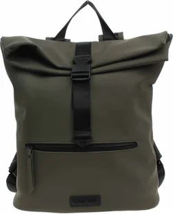Damski plecak z klapą Marco Tozzi wykonany z materiału syntetycznego (poliuretan) ma wymiary 44/35 x 35 x 13 cm i jest wyposażony w zapinaną na zamek kieszeń awaryjną z przodu. Plecak, który ma zapinaną na klamrę klapę i zapinaną na zamek komorę główną, można nosić w ręku za uchwyt lub na plecach na regulowanych, wyściełanych paskach, których nie można odpiąć. Tył plecaka jest wyściełany i ma dużą kieszeń z pionowym zamkiem błyskawicznym. Wyposażenie wewnętrzne: 1x duża kieszeń z tyłu na laptopa, 2x kieszenie bez zapięcia.