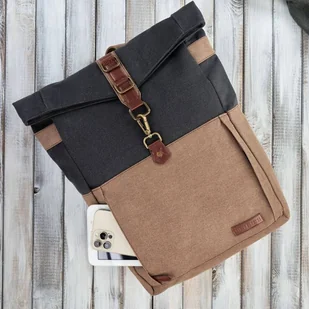 Model E–06 wykonano z połączenia trwałych materiałów – bawełny canvas oraz skóry wegańskiej 100%. Plecak uszyto mocnymi nićmi i w dbałości o detale, zastosowano bawełnianą podszewkę w paski. Zapięcie stanowi karabińczyk z pół-klapą, dodatkowo zabezpieczony od wewnątrz napą magnetyczną. Komora główna z powodzeniem mieści format A4. Dodatkowo we wnętrzu znajduje się mała kieszonka na suwak, na najpotrzebniejsze drobiazgi. Dodatkowo na bokach plecaka umieszczono pionowe kieszenie boczne na suwak.