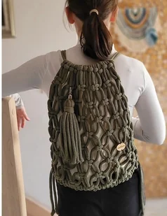 Worko-plecak w całości wykonany ze sznurka bawełnianego. W środku wszyty jest organizer. U góry ściągany jest sznurkiem a na dole przypięty jest karabińczykami - długość można wyregulować Plecak w całości można . . .