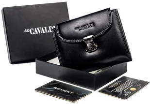 Elegancki portfel damski zamykany klapką z bezpiecznym zapięciem, odszyty z mocnej i trwałej skóry naturalnej bydlęcej. Posiada kieszeń na bilon zamykaną na nap, 9 przegródek na karty oraz 4 na większe dokumenty, np. dowód rejestracyjny. Ochrona RFID.