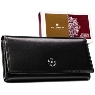 Portfel damski ze skóry naturalnej Peterson ochrona kart RFID STOP czarny Czarny portfel damski Peterson®️ ze skóry naturalnej Poszukujesz klasycznego, ale funkcjonalnego portfela, który pomieści wszystko, czego potrzebujesz na co dzień? Ten portfel to połączenie stylu, elegancji oraz niezwykłej pojemności. ❇️ Ekskluzywny design — elegancka skóra w intensywnym odcieniu bordowym. ❇️ Pojemne przegródki — liczne miejsca na karty, dokumenty i gotówkę. ❇️ Bezpieczeństwo RFID — ochrona przed kradzieżą danych. ❇️ Idealny na prezent — zapakowany w eleganckie pudełko.