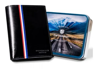 Duży, Skórzany Portfel Męski Bez Zapięcia Duży, skórzany portfel męski na zatrzask — Peterson Modny design | Odszyty bardzo trwale z doskonałej jakości gładk...