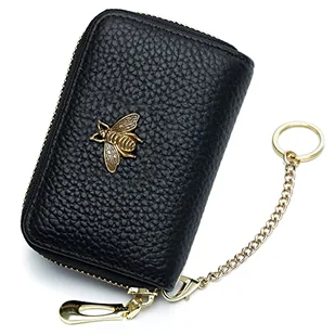 imeetu Etui na karty kredytowe RFID, mały skórzany portfel na karty z zamkiem błyskawicznym dla kobiet, czarny (okno ID + breloczek do kluczy), mały, klasyczny
