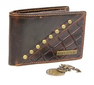 Portfel wykonany w oldskulowym, kowbojskim stylu. Portfel jest niewielki, dzięki czemu sprawdzi się idealnie dla osób, które nie lubią nosić przy sobie wielu rzeczy. Portfel ten ma ozdobny wzór imitujący gadzią skórę oraz nity wykonane z metalu wysokiej jakości. Nie rysują się ani nie niszczą zbyt łatwo. Produkt ten jest niewielki, dzięki czemu zmieści się w niemal każdej kieszeni, nie wypychając jej i nie niszcząc. Jednak mimo małego rozmiaru mieści wszystko, co jest niezbędne jego właścicielowi. Portfel z pewnością sprawdzi się dla fanów zwierzęcych printów, motywów inspirowanych dzikim zachodem czy stylem kowbojskim. Model dostępny jest w wielu odcieniach brązu, dzięki czemu każdy mężczyzna znajdzie dla siebie odpowiedni produkt. W naszej ofercie można znaleźć małe etui na dokumenty, torby do pracyczy też portfele z grawerem.