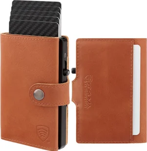 KORUMA Skórzany portfel męski z zewnętrzną kieszenią na kartę oraz aluminiowym etui z wysuwanymi kartami brąz Uniwersalny