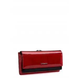 Modelnbsp;BC102-1nbsp;to elegancki damski portfel ze skóry naturalnej, stworzony z myślą o kobietach ceniących doskonałą organizację i stylowy wygląd. Rozbudowane wnętrze oferuje aż 12 miejsc na karty, 3 przegrody na banknoty oraz liczne kieszonki, które ułatwiają przechowywanie dokumentów i drobiazgów. Podwójne zamknięcie (magnes i zatrzask) zwiększa bezpieczeństwo zawartości, a klasyczne połączenie kolorów czerni i czerwieni dodaje całości charakteru. Portfel zapakowany jest w eleganckie pudełko z logo producenta — idealny na prezent ????Specyfikacja portfela: