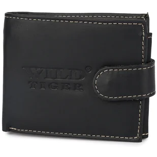 Męski portfel skórzany marki WILD TIGER wykonany z najwyższej jakości skóry naturalnej o pomarszczonej strukturze i matowym połysku. Męski portfel skórzany marki WILD TIGER wykonany z najwyższej jakości skóry naturalnej o pomarszczonej strukturze i matowym połysku. Poziomy portfel zapinany na nap jest spełnieniem potrzeb mężczyzn pragnących posiadać elegancki, a zarazem praktyczny portfel skórzany. Portfel posiada: dwie przegrody mieszczące w pełni rozłożone banknoty , w jednej z nich dodatkowa kieszonka zamykana na suwak jedna przegroda na monety zamykana na nap, dwie małe przegrody z półprzezroczystą siatką na zdjęcia, 9 kieszonek na karty lub dokumenty laminowane, jedna dodatkowa przegroda na drobne monety, Portfel męski rozkładany dwukrotnie, w którym zarówno cały portfel jak i skrzydło wewnętrzne są zamykane na nap.