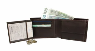 - duża praktyczna kieszeń na bilon, zapinana na nap, bez prześwitów w dolnych rogach - co zapobiega gubieniu zawartości; kieszeń odchyla się na tyle daleko, że nie ma problemów z wyciąganiem bilonu
