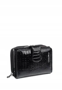 Wyrazisty styl i luksusowe wykończenie Lakierowana skóra naturalna z tłoczeniem imitującym skórę sprawia, że model Portfel AE51-2 przyciąga uwagę i doskonale podkreśla elegancki styl właścicielki. Funkcjonalność w eleganckiej formie Część na karty i banknoty zabezpieczona solidnym magnesem kryje przemyślane wnętrze z dwiema kieszeniami na bilon – jedną na suwak i drugą na zatrzask. Specyfikacja portfela: materiał: skóra naturalna lakierowana zamknięcie części z kartami i banknotami: solidny magnes przegroda na banknoty: