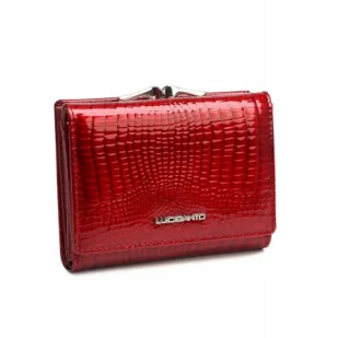 Portfel Czerwony Damski Skóra Naturalna LUIGISANTO RFID Lakierowany Zgrabny