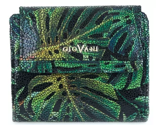 Skórzany mały portfel damski Alina marki Giovani ze wzorem w kwiaty monstera. Mały portfel damski. Portfel na niewielkie rozmiary i dużą pojemność. Jego komp...