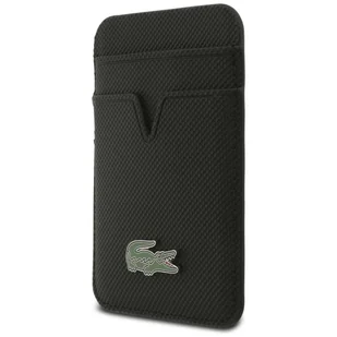 Portfel Lacoste Petit Pique MagSafe czarny Portfel Lacoste Petit Pique MagSafe Lacoste to znana i ceniona francuska marka, która idealnie łączy elegancki szyk i sportową wygodę. Stylowy wygląd Portfel wyróżnia się ciekawą teksturą, która nie tylko przyciąga wzrok, ale także zapewnia przyjemne wrażenia dotykowe. Kolekcję zdobi metalowy wizerunek ikonicznego krokodylka, który doskonale oddaje ducha marki Lacoste, łącząc elegancję ze sportowym stylem. Doskonałość w każdym calu Magnetyczny portfel można łatwo przymocować do tylnej części telefonu z MagSafe lub etui, zapewniając dodatkową przestrzeń na karty i gotówkę. To praktyczne i stylowe rozwiązanie pozwala mieć najważniejsze karty zawsze pod ręką, czyniąc portfel idealnym dodatkiem do nowoczesnego etui.