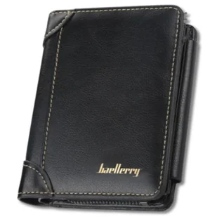 Portfel Męski skórzany na suwak czarny zatrzask pionowy ochrona kart modny