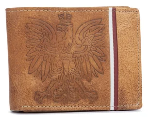 Portfel męski skórzany patriotyczny na karty i dokumenty z ochroną RFID, brązowy