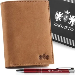 Portfel męski skórzany pionowy brązowy wytrzymały rozbudowany Rfid Zagatto