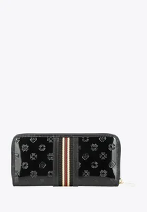 Ten damski portfel to elegancki kobiecy dodatek z wyjątkowej linii Signature. Wykonany jest z lakierowanej skóry z tłoczeniem w monogram WITTCHEN. Dodatkowo zdobi go szeroka tasiemka w paski. Wygodne zapięcie na suwak zadba o bezpieczeństwo zawartości, a wewnętrzne wykończenie ze skóry naturalnej zapewni świetny wygląd na lata. W środku portfel ma wiele miejsc na karty, zapinaną przegródkę na bilon, kieszenie na banknoty i przezroczyste kieszonki na przykład na bilet. Damski portfel z lakierowanej skóry na suwak to ponadczasowy dodatek ze świetnej jakości skóry z eleganckim zdobieniem.