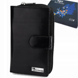 Elegancki, skórzany, duży portfel marki Beltimore® w kobiecym stylu, w czarnym, jednolitym kolorze - wykonany z premium skóry naturalnej. Portfel z ogromną i...