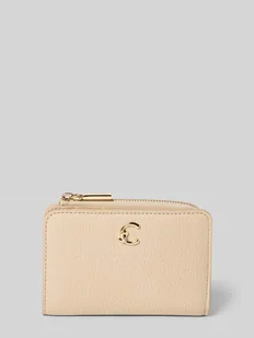 Portfel damski Coccinelle;Główna przegródka na zatrzask;Detal z logo;Przegródki;Boczna przegródka zapinana na zamek błyskawiczny