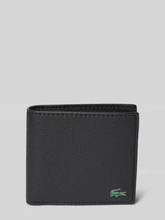Portfel męski Lacoste;Efekt: jednolity kolor, imitacja skóry;Zapięcie: bez zapięcia;Podział: Przegródka na monety, przegródki na karty, przegródki na banknoty, przegródki wsuwane;Aplikacja: Aplikacja z logo z metalu;Wysokość w rozmiarze 1: