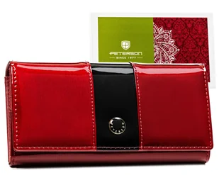 Skórzany duży portfel damski lakierowany antykradzieżowy na prezent PETERSON