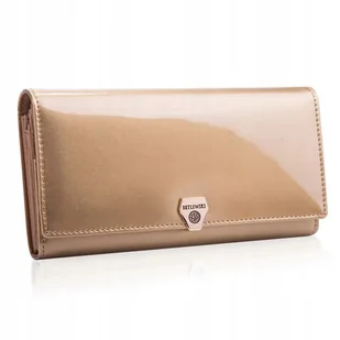 Portfel uszyty został ze skóry naturalnej w stonowanym odcieniu złota - to wspaniały dodatek dla odważnej kobiety, kochającej modę i lubiącej stylowe dodatki. Skóra lakierowana jest w taki sposób, że portfel przepięknie błyszczy - jeśli lubisz wyraziste akcesoria, to będziesz nim zachwycona!