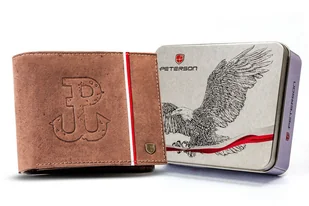 Skórzany portfel męski patriotyczny Polska Walcząca flaga Polski Peterson, brązowy