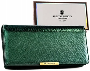 Zielony portfel damski PETERSON RFID STOP duży na zatrzask i suwak elegancki na karty skóra ekologiczna
