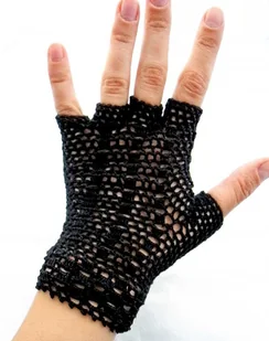 Czarne koronkowe rękawiczki mitenki robione na szydełku. Rozmiar M. Ten wzór jest odpowiedni tak dla kobiety jak i mę ...