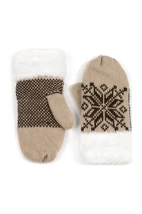 Ciepłe jednopalczaste rękawiczki z motywem gwiazdki.Ściągacz obszyty sztucznym futerkiem.Wewnątrz rękawiczki są dodatkowo ocieplone.Wykonane z miłego w dotyku, niegryzącego materiału.Idealne dla zmarzluchów i fanów skandynawskich