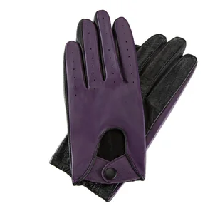Damskie rękawiczki skórzane. Damskie rękawiczki samochodowe, wykonane z najwyższej jakości skóry owczej. Dzięki zapięciu, które tworzy gustowne wycięcie po zewnętrznej stronie rękawiczek oraz gumce, dopasowującej się do dłoni, stylowe damskie rękawiczki sprawdzają się w połączeniu z każdą stylizacją. Dwukolorowy model przykuwa uwagę i ożywia kobiecy look. wykonane z najwyższej jakości skóry naturalnej;