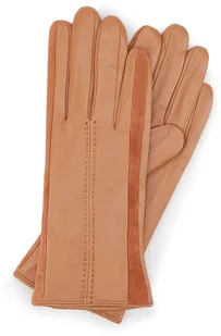Ocieplane rękawiczki damskie, wykonane z najwyższej jakości skóry owczej. Rękawiczki za sprawą elastycznej gumki wszytej od wewętrznej stony dopasują się do kształtu dłoni. Model ten to doskonałe połączenie klasyki z elegancją. Rękawiczki z dwoma zamszowymi wstawkami po bokach i delikatnym przeszyciem w osi będą wyglądać wyjątkowo pięknie z wieloma klasycznymi zestawami. Rozmiar V S M L XL Długość (cm) 23 23,5 24 24,5 25 Szerokość (cm) 8,4 8,7 9 9,3 9,6 Długość śr.