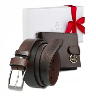 BETLEWSKI Skórzany portfel pasek zestaw prezent