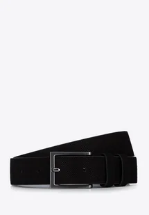Męski pasek we wzór. Ten męski pasek wprowadzi nowy styl do Twojej szafy. Wykonany został z wysokiej jakości skóry zamszowej, wytłoczonej w dyskretne ukośne paseczki. Elegancka klamra w kolorze grafitowym dodaje mu szyku. Noś go do nieformalnych stylizacji, do dżinsów lub sztruksów – w każdej sytuacji będziesz wyglądał stylowo.