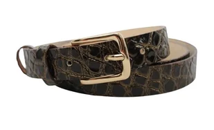 Pasek Damski Skórzany Arucce (PL) Skóra Licowa EXTRA 25 mm Lakierowany ,,SKÓRA WĘŻA ,, CZEKOLADOWY
