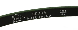 Pasek skórzany wykonany w 100% z bydlęcej skóry. Produkcja pasków odbywa się w Radomiu z użyciem skór z polskich garbarni.