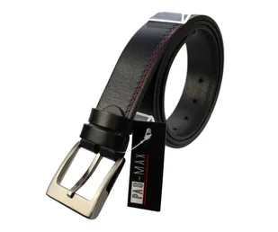 Pasek Męski Skórzany PAS-MAX (PL) Skóra Licowa EXTRA 40 mm Czarny Z Niebieską I Czerwoną Nitką