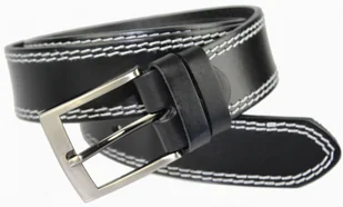 Pasek Męski Skórzany PAS-MAX (PL) Skóra Licowa EXTRA 40 mm Czarny Z Podwójną Białą Nitką XXL Nadwymiar