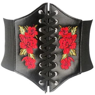 PASEK PAS szeroki GORSET PASEK GUMOWY kwiaty SZNUROWANY