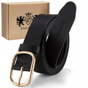 Pasek skórzany damski skóra naturalna CZARNY do spodni ZŁOTA klamra ZAGATTO