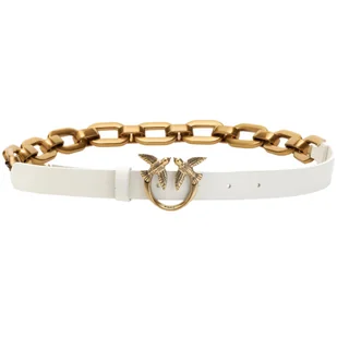 Pasek z miękkiej skóry o jedwabistej fakturze z metalową klamrą Love Birds Diamond Cut, uzupełniony metalowym makro-łańcuszkiem o kwadratowym kształcie.